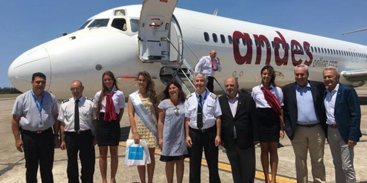 El Aeropuerto Internacional Astor Piazzolla recibió el lunes pasado el primer vuelo de Andes Líneas Aéreas como un verdadero acontecimiento de desarrollo para la ciudad costera. La ceremonia de bienvenida y bautismo del vuelo fue encabezada por el intendente Carlos Arroyo, la presidenta del Ente Municipal de Turismo (EMTUR), Gabriela Magnoler; el vicepresidente, Jorge Zanier; y la Reina Nacional del Mar.