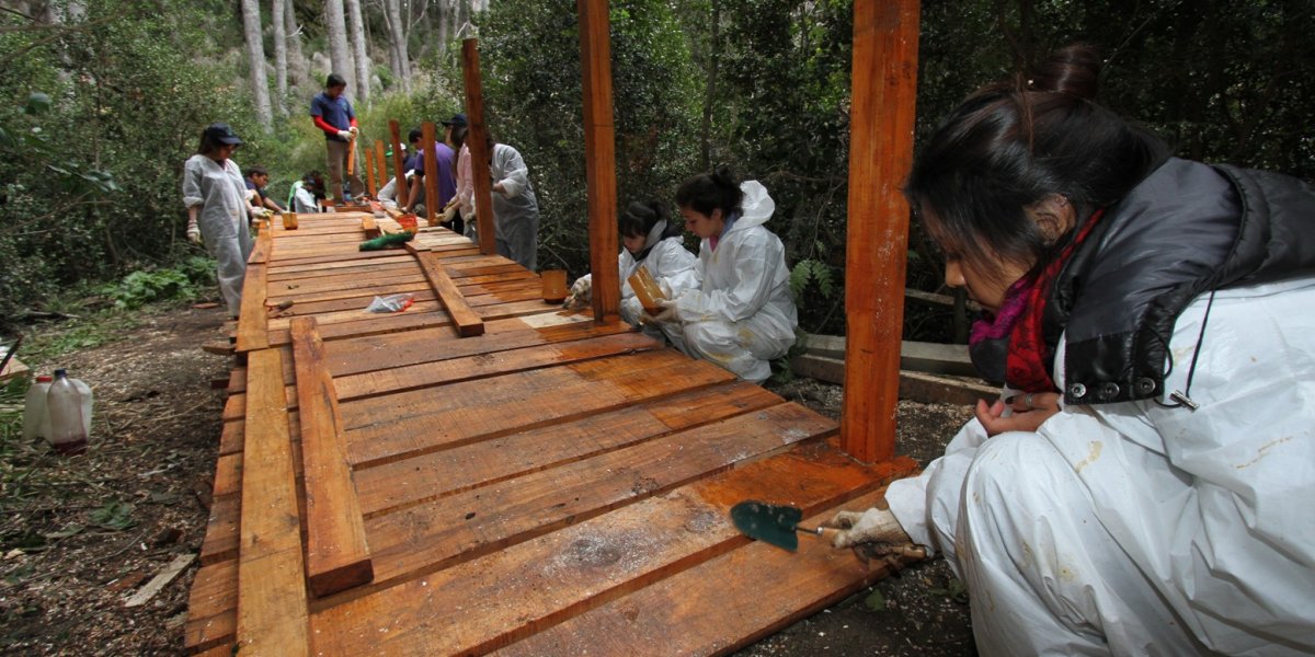 En esta oportunidad se trabajó en el en el Acceso del Parque Municipal Llao Llao, gracias a la participación de los alumnos del Centro de Educación Media (CEM) Nº 46 y junto a voluntarios de LAN Argentina.