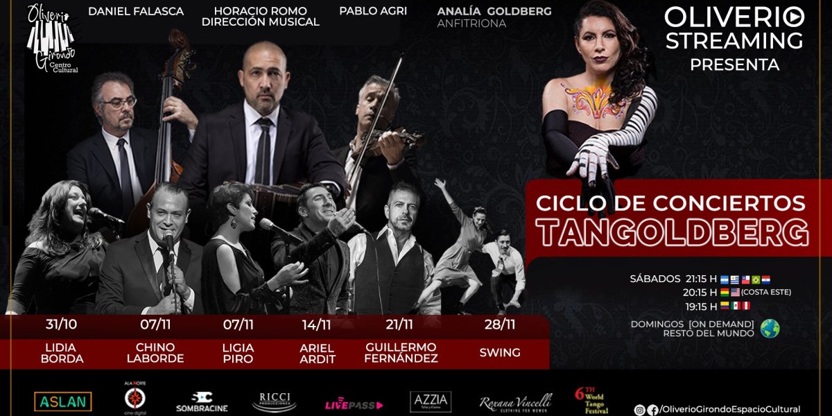 Analía Goldberg, pianista y anfitriona del show “TanGoldberg”, presentará un ciclo de espectáculos para el recuerdo, todos los sábados (desde el 31 de octubre hasta el 28 de noviembre), junto a un artista invitado consagrado del mundo del tango, de la talla de Lidia Borda, Ligia Piro, Chino Laborde, Ariel Ardit y Guillermo Fernández, entre otros.
